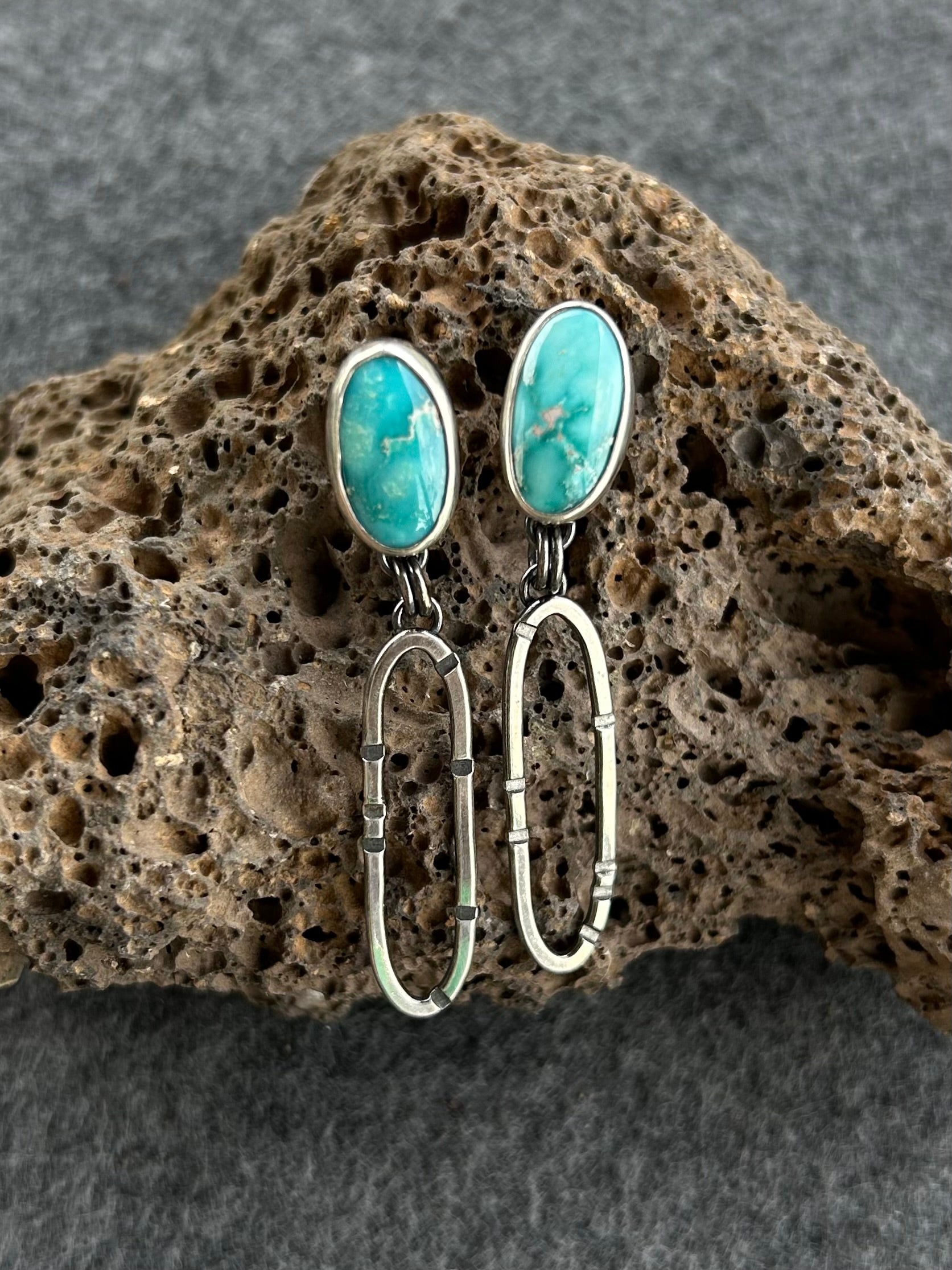 Anvil Hoop Earrings with Stamped Sterling Silver and Whitewater Turquoise